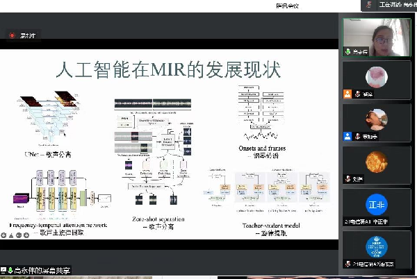 司小朦博士提出了融合多样性和结构约束的多视角子空间聚类模型;鲁棒的深度多视角子空间聚类模型;对抗自监督的深度不完整多视角子空间聚类模型。蔡霞博士围绕材料基因组内容,结合机器学习与神经网络方法,首次预测钙钛矿带隙与对应器件的性能参數,基于贝叶斯优化和遗传算法优化成分比,揭示模型中潜在的物理规律并得到实验验证,创新性地提出多步骤多阶段筛选方案,从18万候选者中筛选出4种高性能材料。肖婷博士阐述了在机器学习应用于医学国像分析过程中,如何从CT图像、数字病理图中发现能描述数据固有规律或模式的有效特征。高永伟博士的研究方向为人工智能在音乐信息检索领域的应用,她介绍了音乐信息检索领域的发展历史与发展现状、人工智能在歌声分离和主旋律提取两个研究方向的最新进展、以及本人对音乐人工智能未来的一些思考。张潇博士做了“distributionallty robust beamforming under moment uncertainty”的报告。高倩倩博士在船舶升沉信息测量中,利用不同信息频率的差异性,通过引数字滤波器将高频的升沉信息从叠加信号中分离出来,从布获得较为准确可用的升沉测量信息。曾文博士的研究方向为信息安会决策分析和目标优化研究,她针对云物联网中信息流的安全冋题,使用模糊度来量化信息流的安全;针对网络信息安会技术在商业流程中带来的生产力损失问题,制定量化标准、建立商业流程的模型。曹志威博士在信息安全方面主要进行了摄像头的安全研究工作,主要对身份认证体系构建、安全威胁发现模型的建立、视频物联网的入侵检测做了深入的研究。蔡英迪博士主要研究动画中女性角色,构建中国女性角色的肢体语言分析框架。钟哲凡博士针对时空数据所具有的各种复杂特性而使得其管理与使用十分困难的问题,指出相比于查询本身,Why not查询问题更关注查询用户对于査询结果的需求,并同时为用户提供一份令其满意的解决方案。