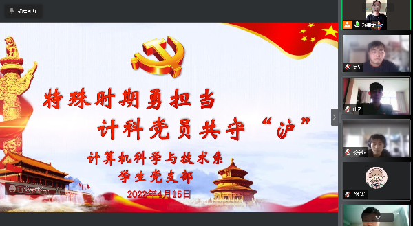 4月15日下午,计算机科学与技术系学生党支部开展了组织生活会暨防疫志愿服务交流分享会,本次会议由党支部书记沈惠子同志主持。