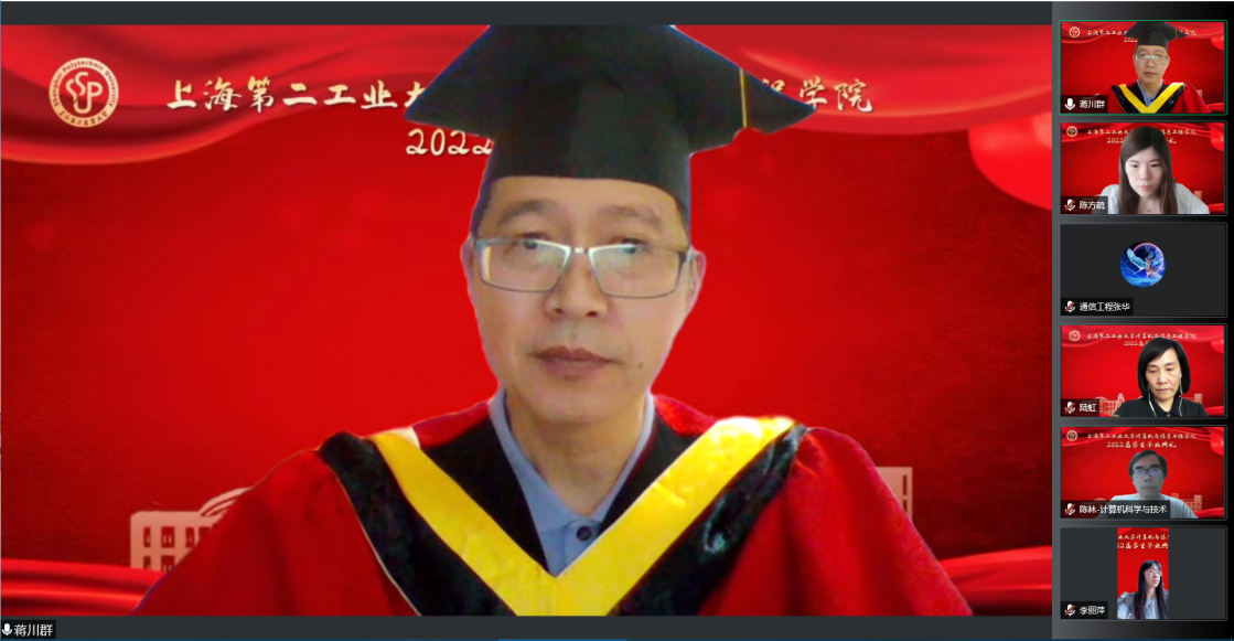 学院党委书记蒋川群教授宣读2022年上海优秀毕业生、上海第二工业大学优秀毕业生的决定,33名毕业生获得2022年上海市优秀毕业生荣誉称号,101名毕业生获得2022年上海第二工业大学大学优秀毕业生荣誉称号。