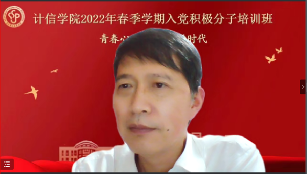 6月13日晚上,yl6809永利官网于线上开展了2022年春季学期入党积极分子培训班开班仪式暨第一次理论授课。学院党委书记蒋川群、学院党委副书记娄宝蕊、各学生党支部书记及101名入党积极分子参加了开班仪式。仪式由组织员韩秀梅主持。