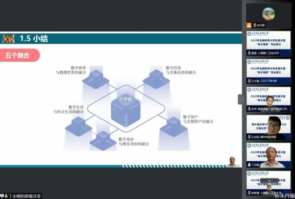 丁志刚研究员以熟知的电影为引,围绕元宇宙、人工智能、物联网等,生动形象的开展了题为“人工智能技术在元宇宙的应用”的讲座,图文并茂地为营员们作了精彩分享,使大家感受到了学术之魅力。人工智能、元宇宙等新技术将深刻影响包括教育在内的各行各业,我们应积极探索如何应用新技术改进教育。最后,丁老师耐心解答了营员们的问题,并祝愿大家在本次夏令营中收获多多。