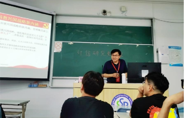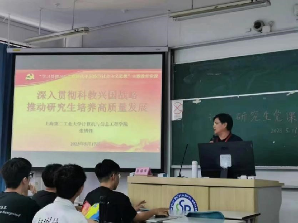 张博锋从三个方面展开讲解:解读二十大报告中科教兴国战略重要含义,指导广大研究生领悟其要义;学习习近平总书记关于人工智能、大数据等专业相关的重要论述,引导研究生抓住时代契机,积极参与实践与科研;解读研究生教育培养模式与学制,鼓励研究生脚踏实地、勤奋学习。