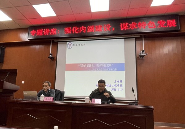 副院长石林祥以“强化内涵建设,谋求特色发展”为主题,从培养方案、课程体系、产教融合等方面分享了一流专业建设经验。