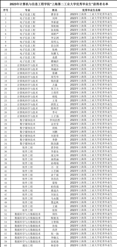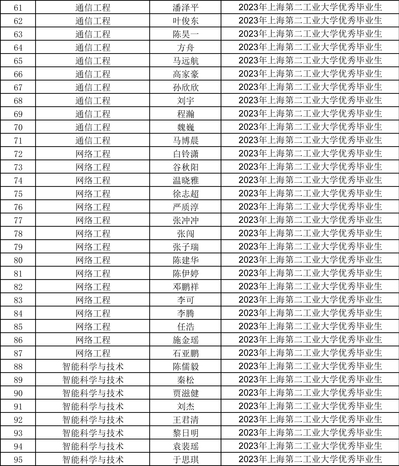 2023届上海第二工业大学优秀毕业生