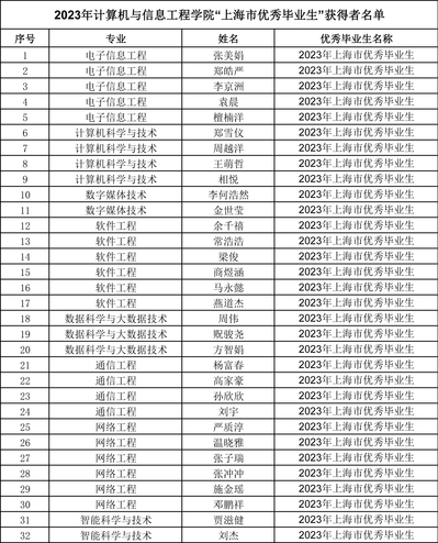2023届上海市优秀毕业生