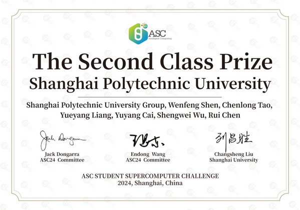 2024年1月10日至4月13日,yl6809永利官网5名同学在上海参加ASC世界大学生超级计算机竞赛,并荣获二等奖。