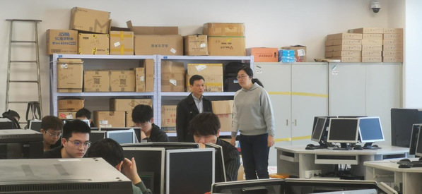 谢华清一行来到学院正在建设中的智算平台,对智算平台一期建设工作表示肯定,并指出要加快推进智算平台二期建设工作,为学校发展带来新的增长点。智算平台是学校十四五规划中人工智能新兴交叉学科建设的重要内容,是学校在人工智能领域服务社会的窗口和标杆。