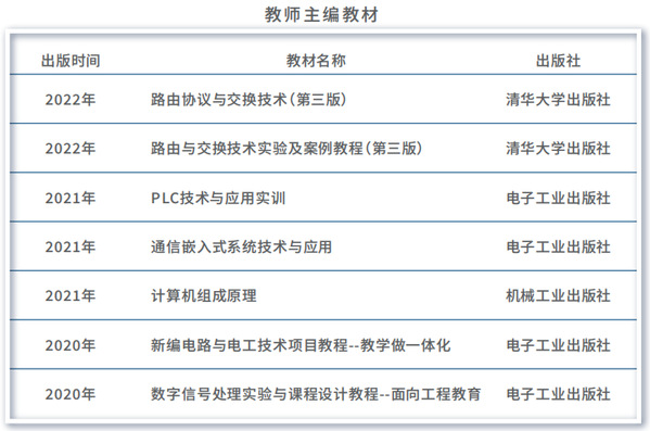 教师主编教材曾获国家“十三五”规划教材二等奖、三等奖、全国优秀科技图书奖三等奖等。
